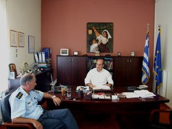 Ο κ. Καραμπατζός αναφέρθηκε στις πρόσφατες σοβαρές ζημίες που προκάλεσαν άγνωστοι στο «Πέτρινο» κτήριο της «Ναϊάς» (βάψιμο τοίχων, σπάσιμο παραθύρων κλπ.) και για τις οποίες ο Δήμαρχος έχει υποβάλλει από 28/7 μήνυση κατ' αγνώστων και στους βανδαλισμούς στο δημοτικό πάρκο. Ο κ. Παραχρήστου είπε ότι η Αστυνομία με τις δυνάμεις που διαθέτει στη Νάουσα θα καταβάλλει κάθε προσπάθεια για την καλύτερη δυνατή αστυνόμευση της πόλης σε συνδυασμό και με τη μονάδα αστυνόμευσης των μοτοσικλετιστών "ΔΙ.ΑΣ" η οποία πραγματοποιεί καθημερινές περιπολίες και αιφνιδιαστικούς ελέγχους.